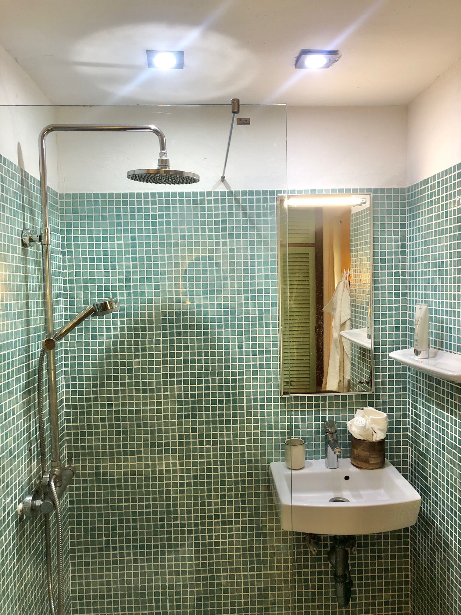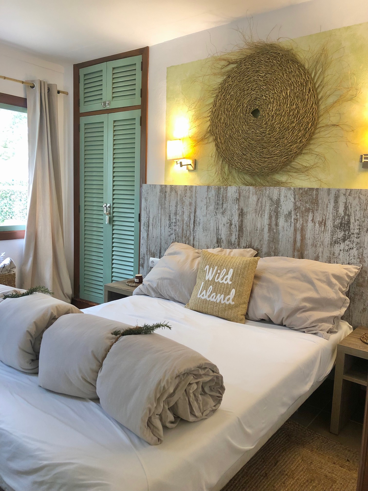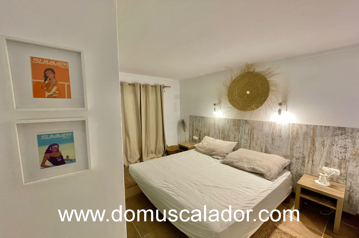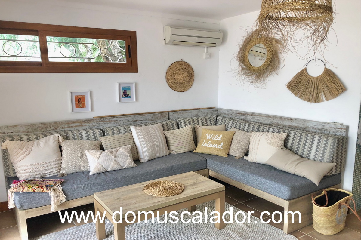 Wohnzimmer, 2 Schlafzimmer, eine komplette Küche, 2 Duschbäder. Die BoHo-Einrichtung ist gepflegt, bodentiefe Fenster und Klimaanlage, WiFi vorhanden.