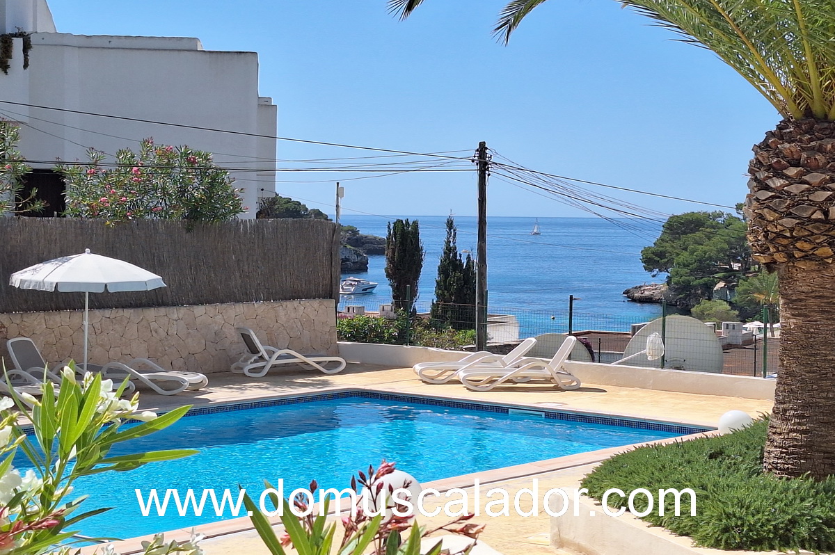 Sie suchen das perfekte Ferien-Apartment in Cala d’Or? Diese ca. 65 m² große 3-Zimmer-Wohnung liegt direkt an der Cala Ferrera. Zum Strand gehen Sie ca. 1 Minute und von der Terrasse (ca. 12 m²) aus haben Sie einen Blick auf die Anlage und den Gemeinschaftspool.