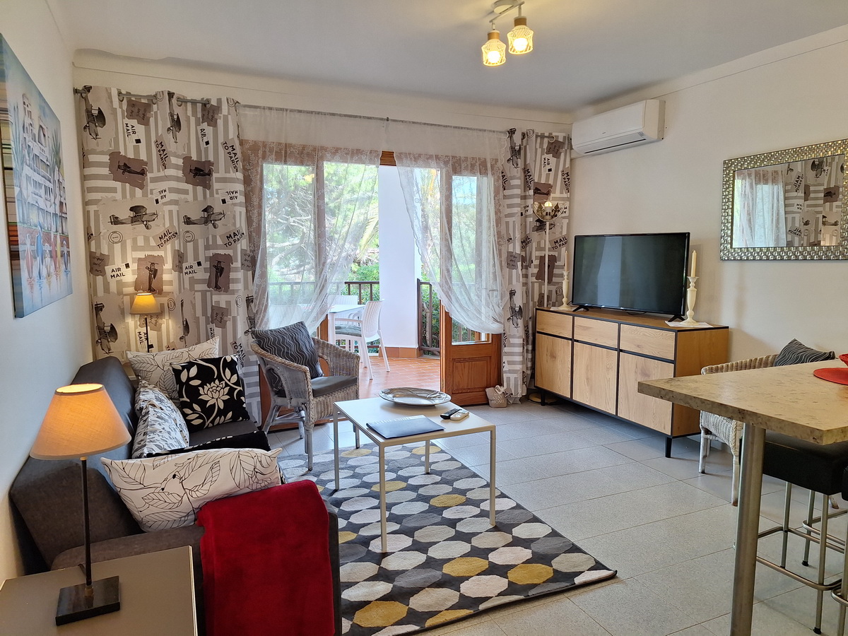 This pretty holiday apartment is only a few minutes’ walk from the marina and can therefore be described as “top” in terms of location. In a small and well-kept residential complex with a swimming pool, you have all the comforts that will make your vacation perfect: parking space, WiFi, hot/cold air conditioning, ceiling fans in the bedrooms, satellite TV, fully equipped kitchen, washing machine, large terrace with dining table, 2 balconies – everything has been thought of here!